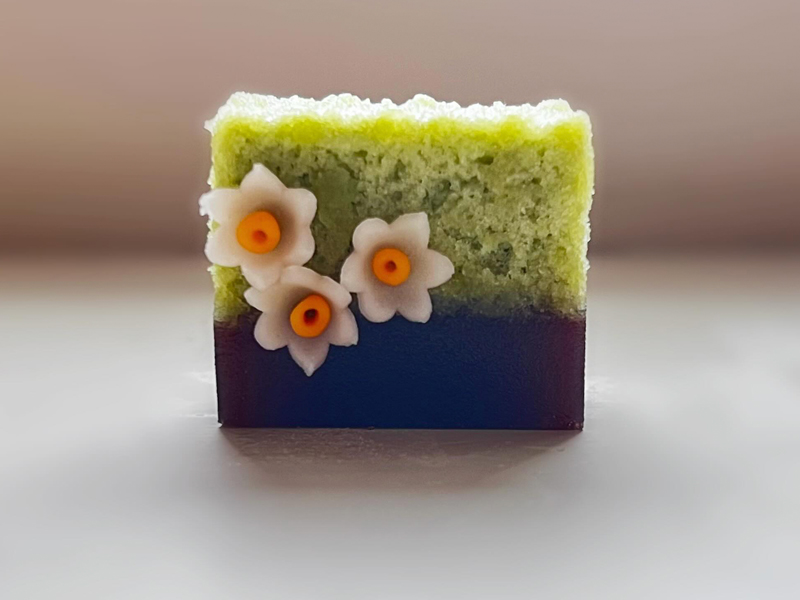 寒い今頃に凛として咲き誇る水仙を表現してみました。さっぱりした甘みの小豆きんとん羊羹には、柚子の香りを忍ばせました。
