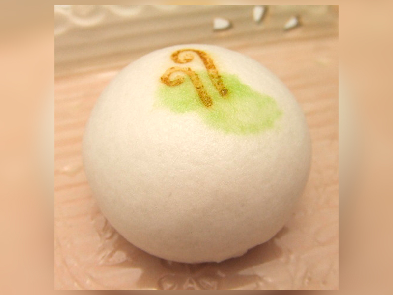 丹波産山の芋をつかった薯蕷饅頭です。膨張剤を使わず、薯蕷(山の芋)の力で饅頭を膨らませ、薯蕷の香りのするお饅頭です。饅頭の類では唯一、茶席菓子となる上等なお饅頭です。中餡は、小豆こし餡。